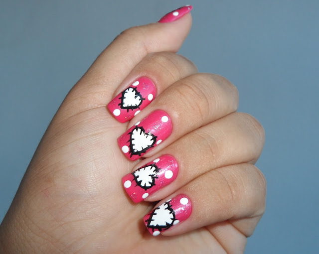 A nossa arte é uma composição de coraçõezinhos apregoados a um rosa com uma pitadinha de glitter, bem discreto... o resultado ficou fofo com uma leve queda gótica, mas tudo super fácil de fazer, com vocês poderão conferir no vídeo!